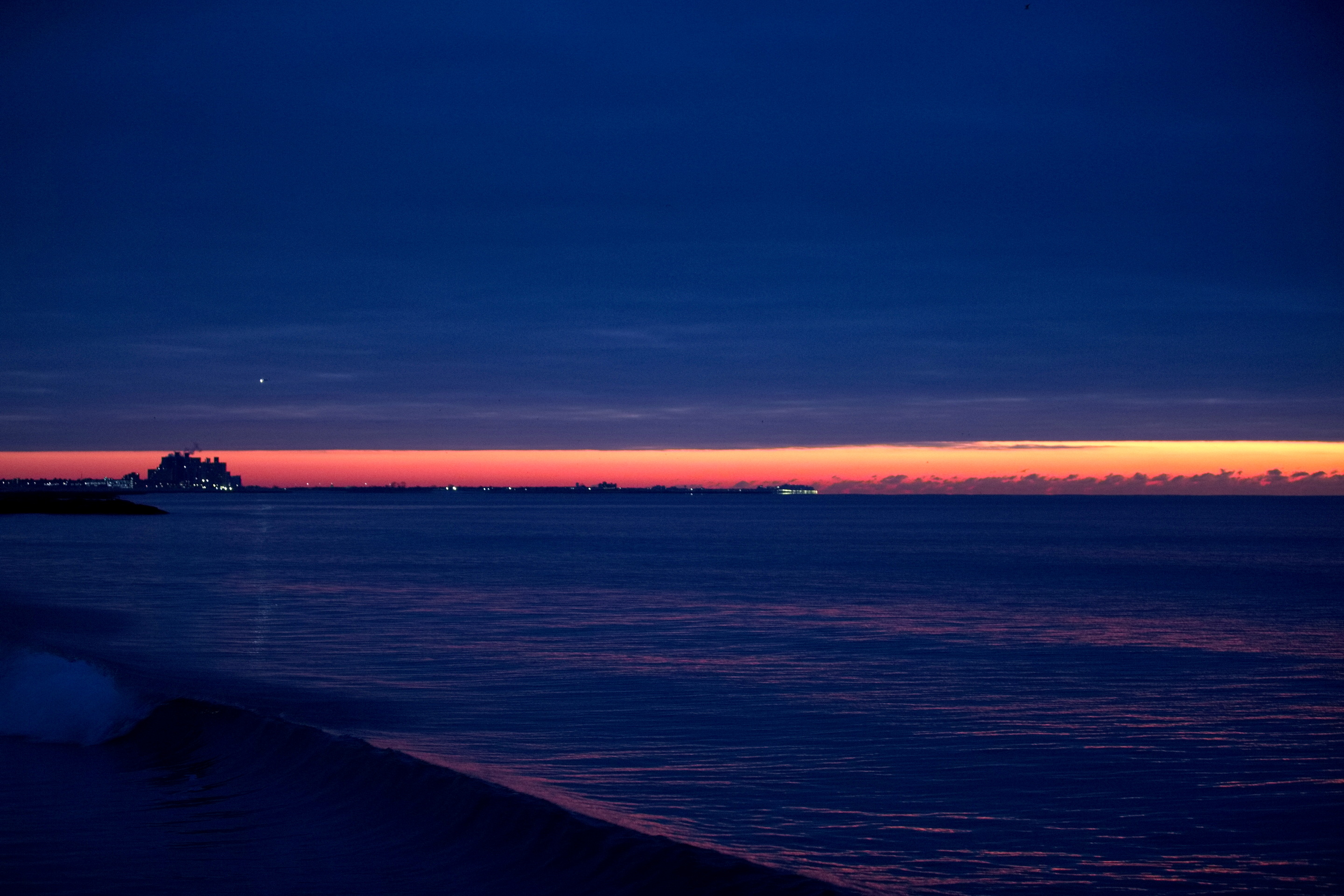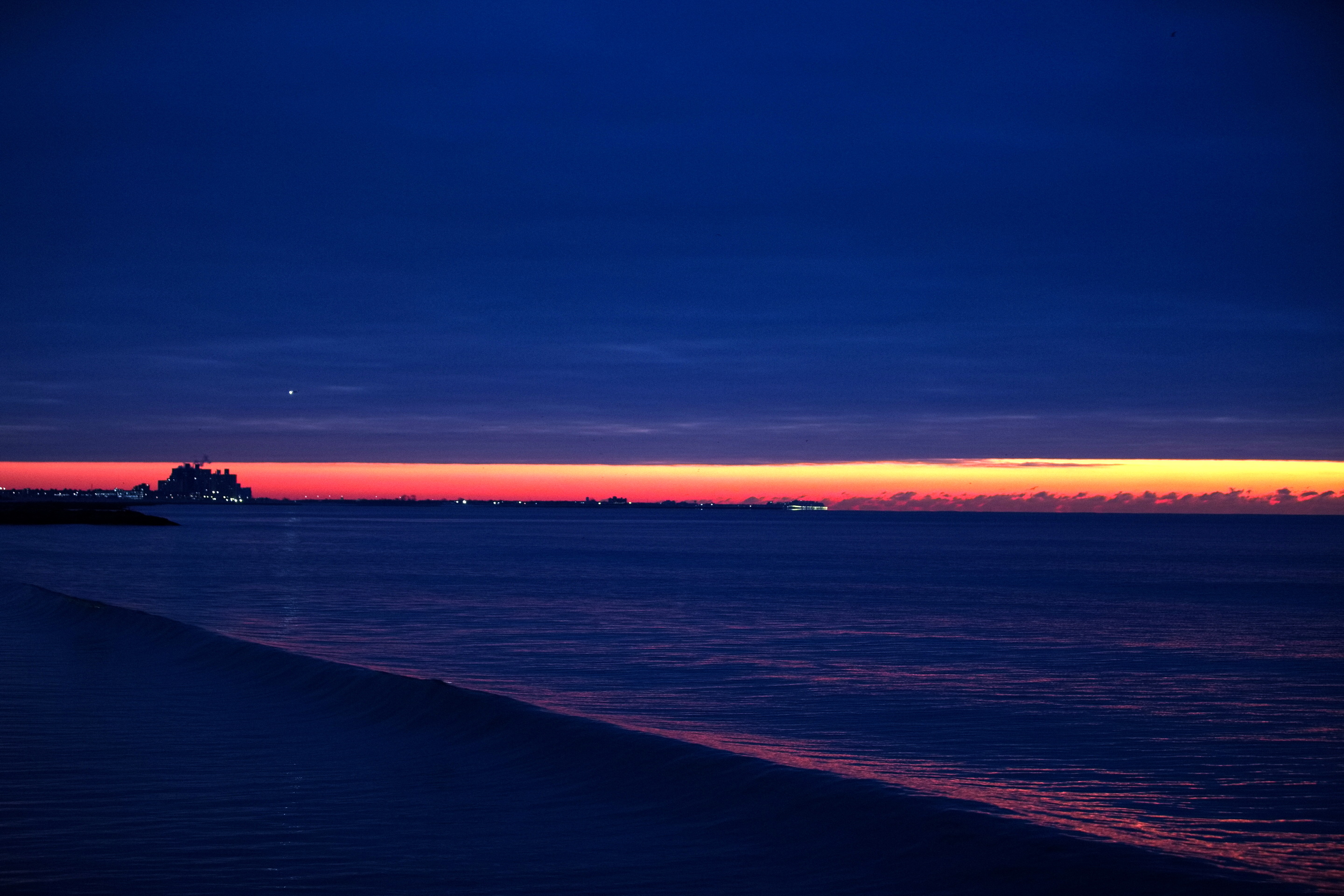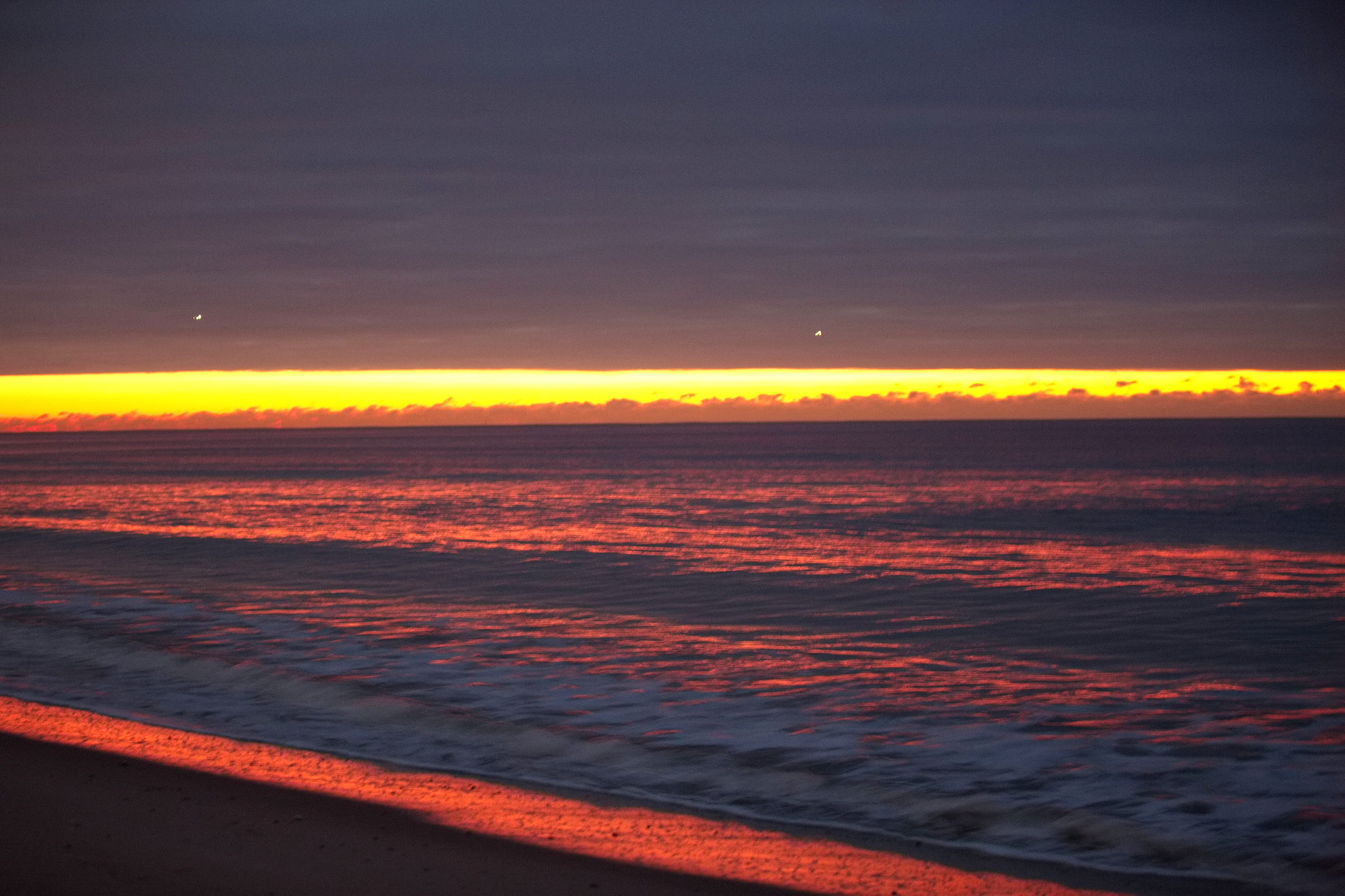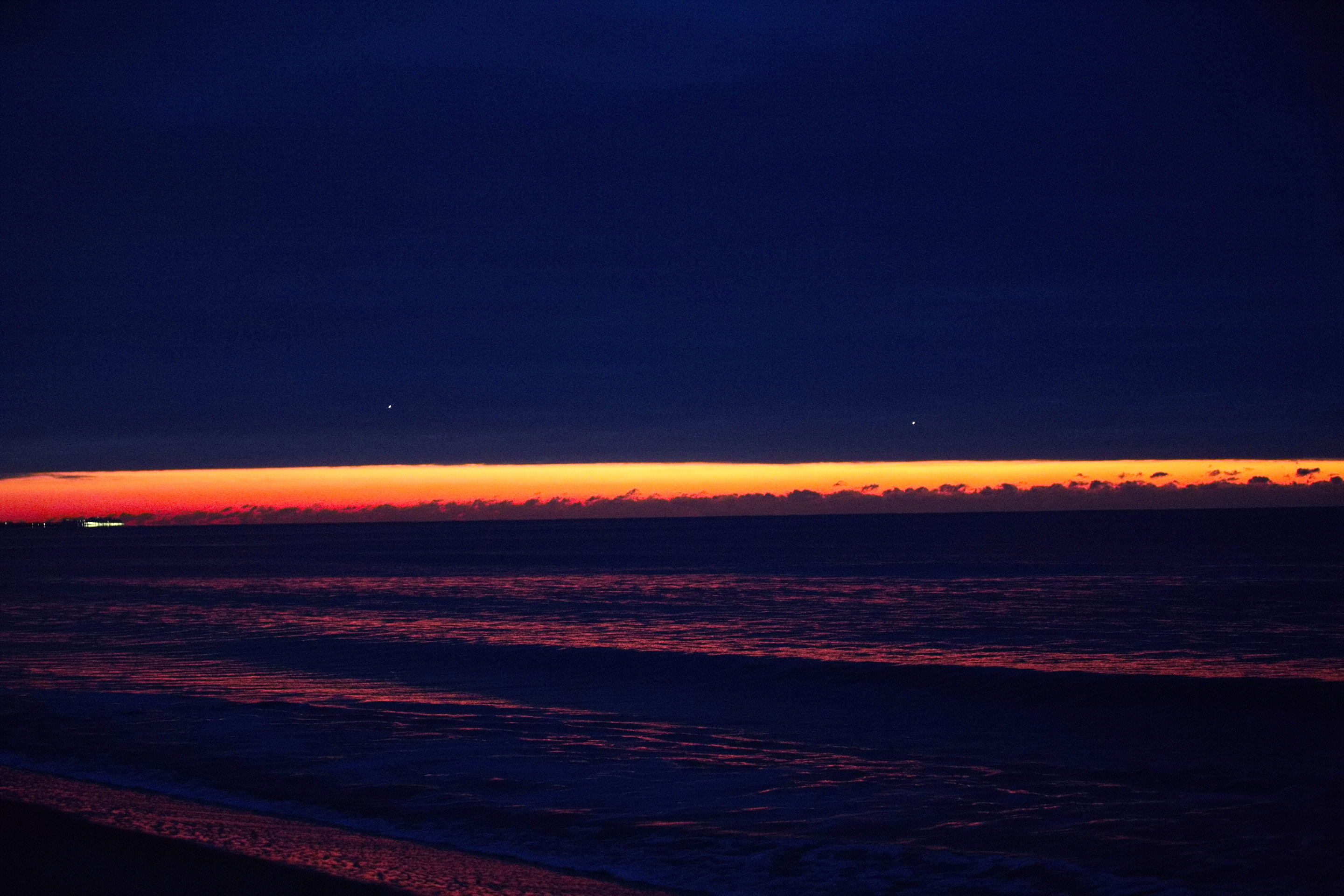 a faintly tinted light hung delicately between the clouds on the horizon.